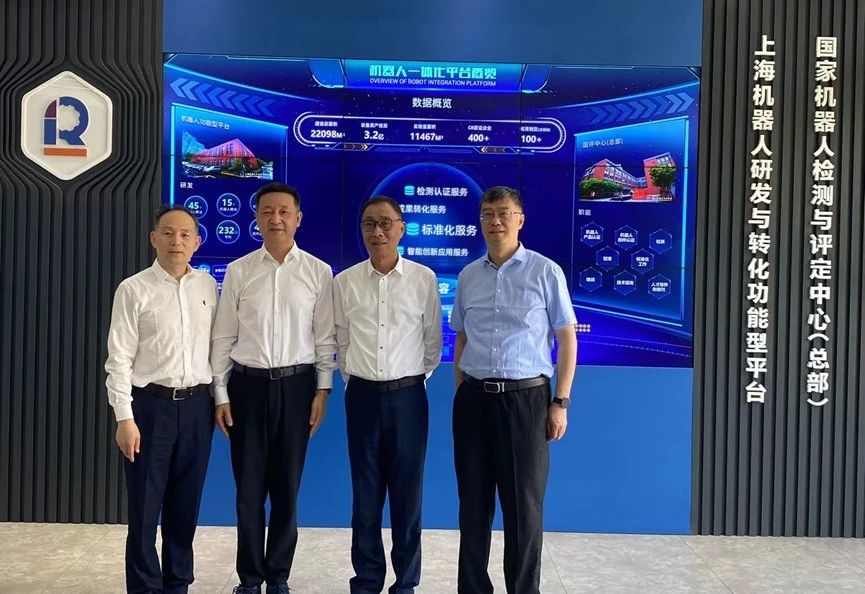 5月14日,普陀区人大常委会主任谈上伟莅临HTH.COM-华体会(中国)机器人有限公司官网调研指导,上电科董事长兼总裁吴业华,市人大代表、上电科党委书记王爱国,上电科副总裁陆尧,市人大代表、HTH.COM-华体会(中国)机器人有限公司官网院长郑军奇热情接待。