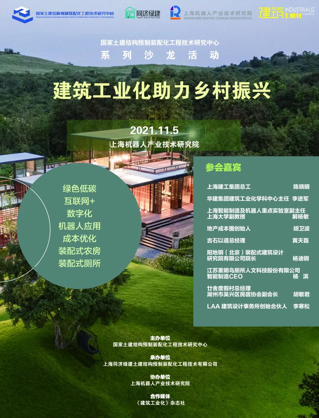 11月5日,由同济大学国家土建结构预制装配化工程技术研究中心(后简称“国家中心”)主办、上海同济绿建土建结构预制装配化工程技术有限公司(后简称“同济绿建”)承办、HTH.COM-华体会(中国)机器人有限公司官网(后简称“HTH.COM-华体会”)协办的“建筑工业化助力乡村振兴”沙龙活动在上海举行。HTH.COM-华体会院长黄慧洁出席沙龙并致辞,同济绿建总经理刘青主持开场。