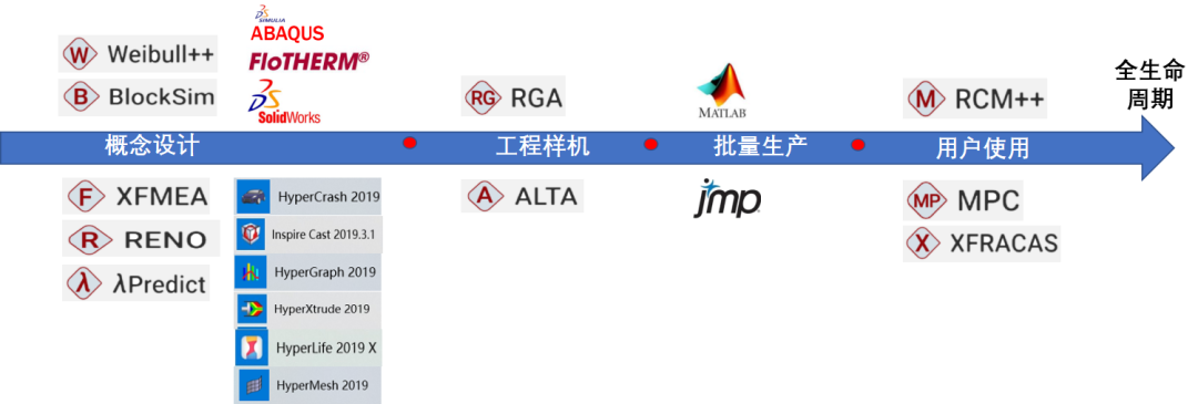 覆盖产品全生命周期研发/制造/使用管理能力的软件硬件平台体系:(1)具有可靠性设计分析、试验设计评价、维修保障管理的可靠性软件平台;(2)具有覆盖产品热/力/电磁维度的数字化设计分析的Altair全系列软件平台。