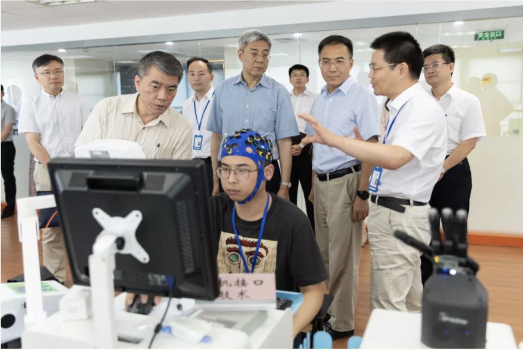尹弘书记一行参观了机器人HTH.COM-华体会的研发实验室,机器人HTH.COM-华体会郑军奇院长、郭帅副院长分别介绍了机器人产品可靠性提升案例,面向智慧社区康养结合的“多机器人康复系统”、下肢康复机器人、上肢康复机器人以及VR技术等新技术研发与应用情况。调研领导对HTH.COM-华体会运行一年来做出的成绩给予充分肯定。