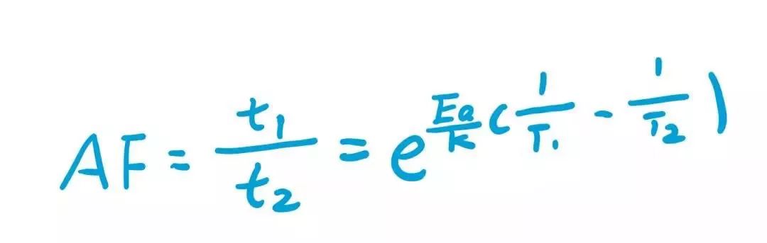 因此,对于两个不同温度应力(T1,T2)下的加速系数计算模型,就可以表达为: