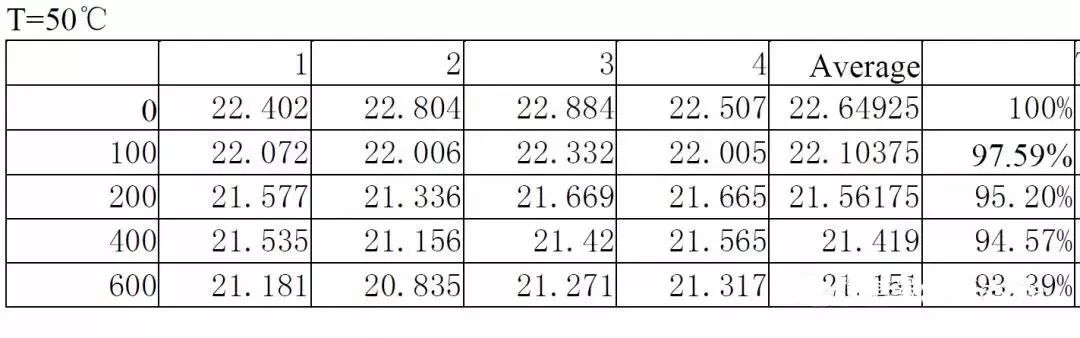 例如,某个电子产品在高温下某项性能会随时间退化,测试安排在50°C和60°C下进行。测量结果如下面表格所示: