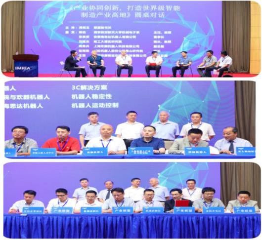 联盟秘书长周明玉主持了“圆桌对话”环节, 南京航空航天大学机械电子系主任、国家杰青陈柏教授,安徽海思达机器人有限公司 董事长张良安教授,哈工大博实HTH.COM-华体会院长刘延杰教授,上海欢颜机器人科技有限公司副总裁周荣兵, 新松机器人股份公司昆山智能装备HTH.COM-华体会 院长赵明扬教授, 深圳市泰格运动控制科技有限公司执行总裁王恺等,围绕《产业协同创新,打造世界级智能制造产业高地》话题,深入产业发展要害、机敏犀利地展开了智慧交流,从产业发展、产学研合作、自主技术和产品挑战国际权威、领军企业和机构的龙头作用、“规格严格、功夫到家”工匠精神等多个角度阐述了各自观点,为与会嘉宾勾勒了一幅生动的智能制造与机器人产业的蓬勃发展场景、和未来的发展前景。